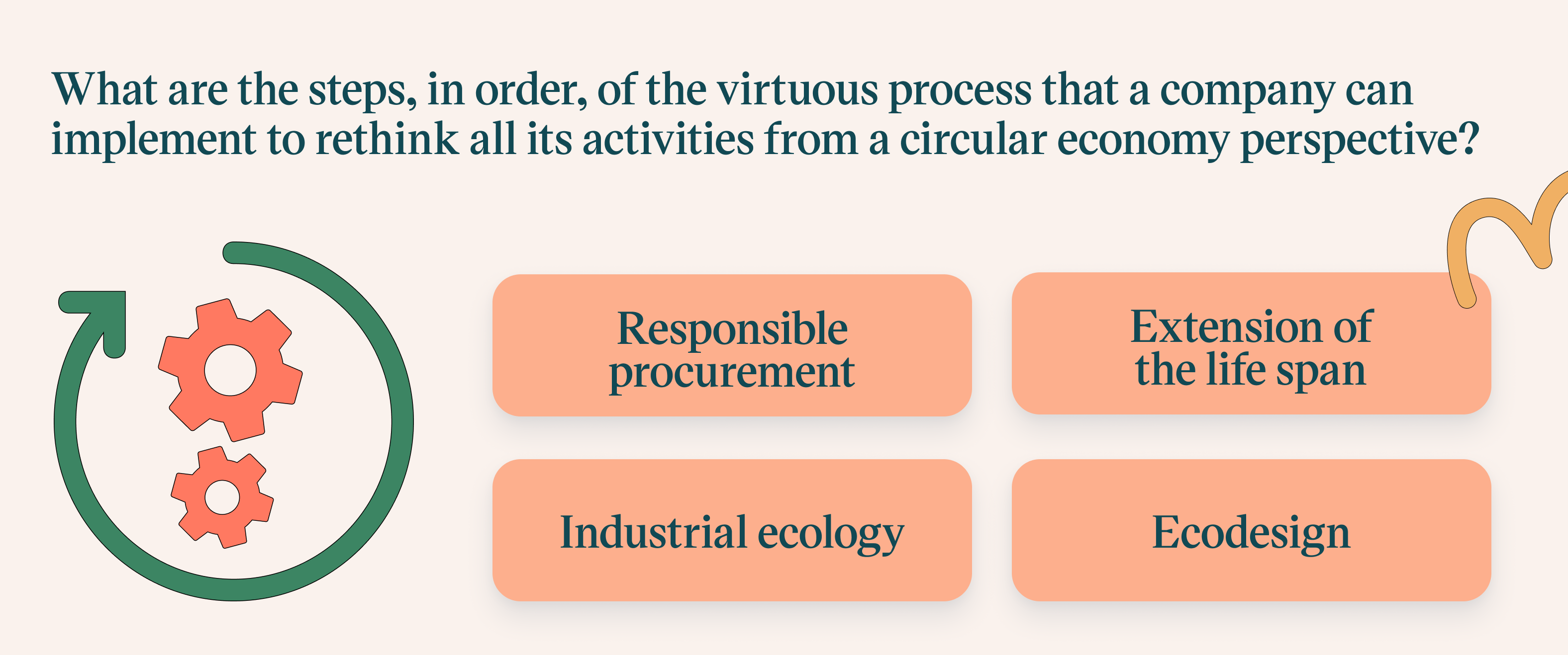 Question 9: What are the steps, in order, in the virtuous process that a company can implement to rethink all its activities from a circular economy perspective?