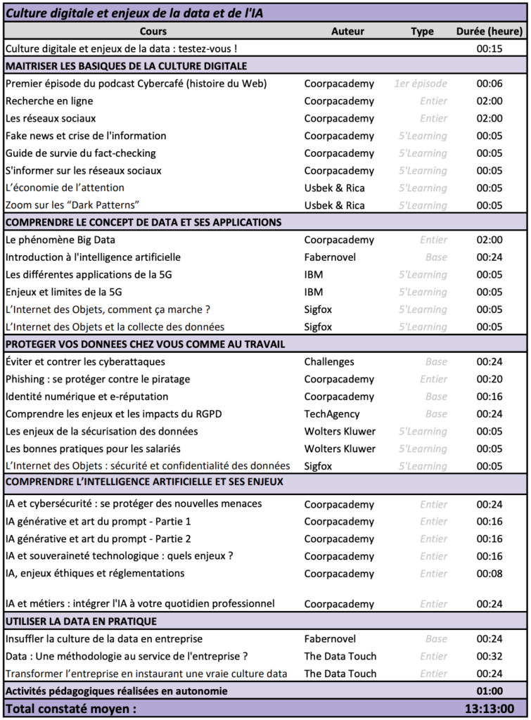 et enjeux de la data : testez-vous ! ». Pour la suite du parcours, voici ci-dessous l’ordre dans lequel